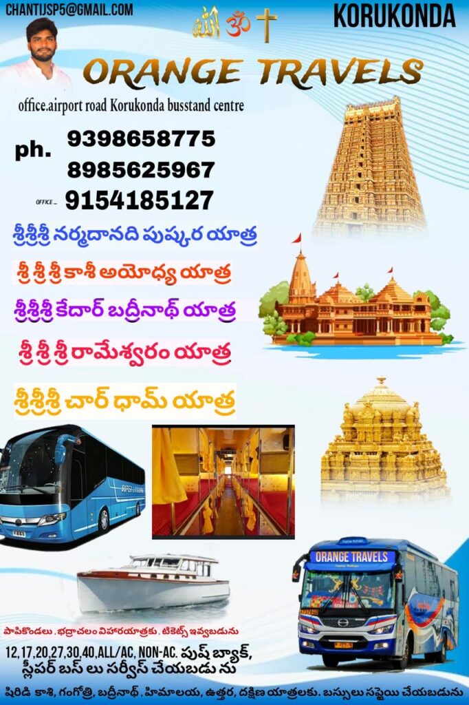 Narayanadri, Papikondalu, Kashi, Ayodhya, Kedarnath, Badrinath, Rameswaram, Yamunotri, Gangotri, Char Dham